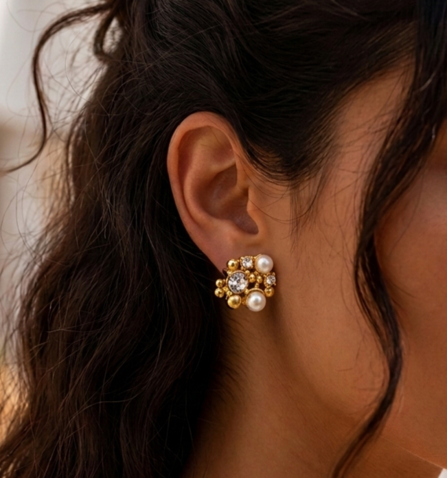 Pendientes de botón con perlas y cristales